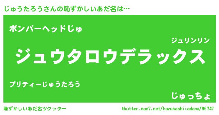 | 男性向けラノベタイトル風あだ名 | 『ジュウタロウスレイヤー』 |
