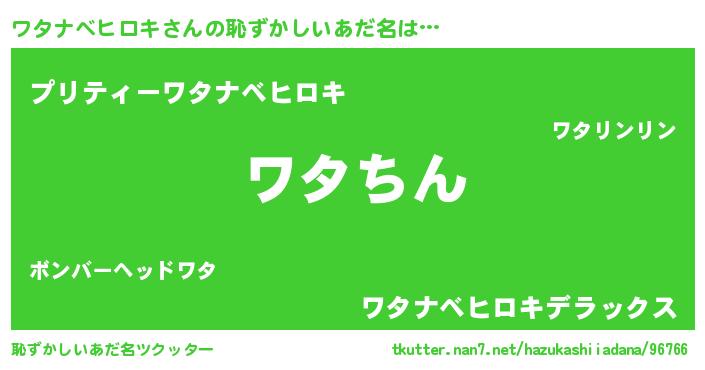 | ヘコむあだ名 | 『ワタナベヒロキ(笑)』『ワタふぇ~』 |