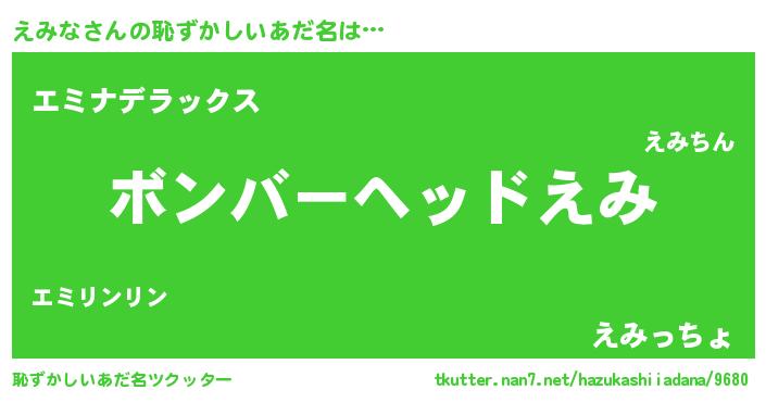 | ヒーロー風カッコイイあだ名 | 『正義の使者えみな』『究極戦士エミナ』 |
