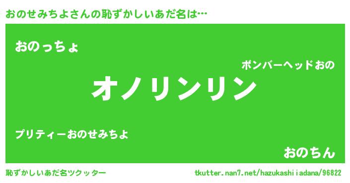 | 意味不明あだ名 | 『とにかく怪しいおのせみちよ』 |