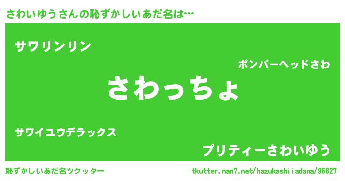 | 意味不明あだ名 | 『住所不定無職さわいゆう(86歳)』 |