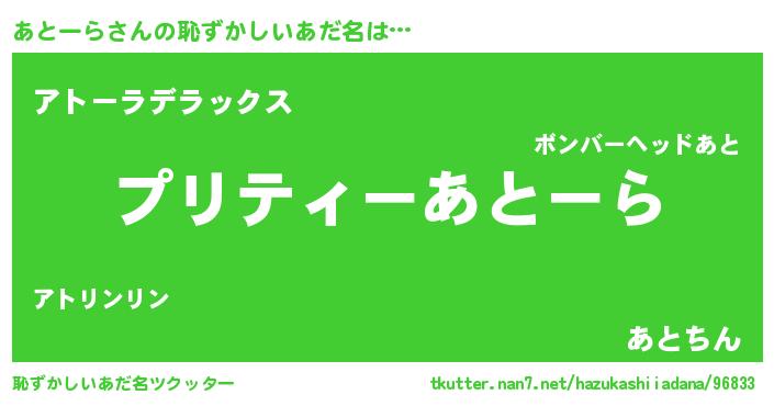 | ヒーロー風カッコイイあだ名 | 『仮面アトダー』『スーパーアトーラ』 |