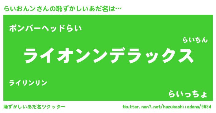 | 意味不明あだ名 | 『住所不定無職らいおんン(74歳)』 |