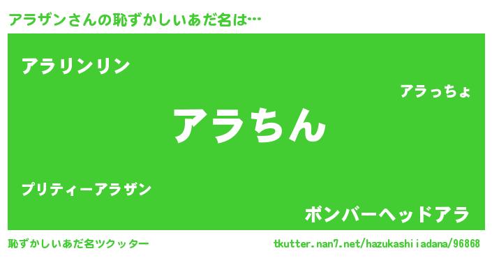 | ヘコむあだ名 | 『アラザン(笑)』『アラを』『つくし』 |