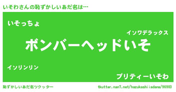 | ヘコむあだ名 | 『つくし』『いそっふぃ~』『いそお』 |