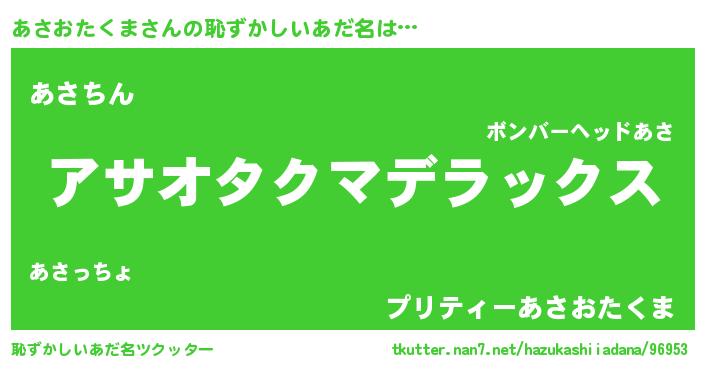 | ヘコむあだ名 | 『あさおたくま(遠い目)』『あさっふぃ~』 |