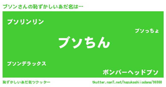 | ヘコむあだ名 | 『ブソン(震え声)』『ブソっぺ』 |