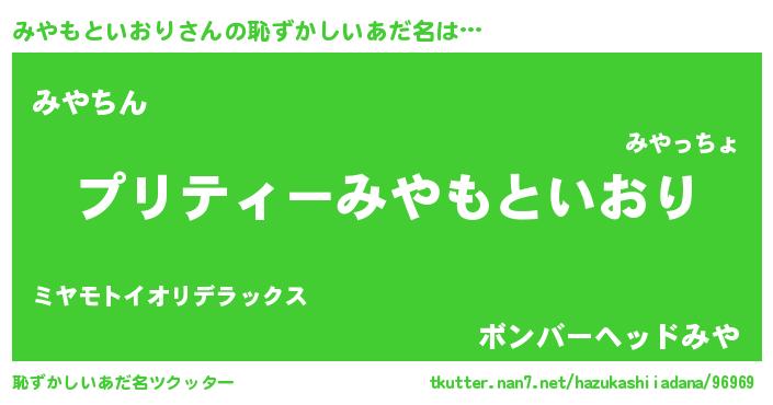 | ヘコむあだ名 | 『みやにー』『みやもといおり(爆)』 |