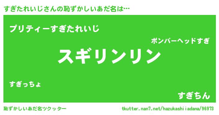 | 胡散臭い通販商品みたいなあだ名 | 『信頼と実績のペンダント…その名も「すぎたれいじ」』 |
