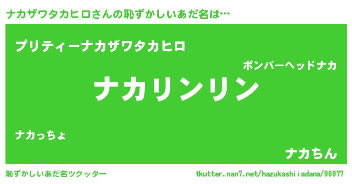 | 男性向けラノベタイトル風あだ名 | 『ナカザワタカヒロの嫁は女の子じゃないと思った?』 |
