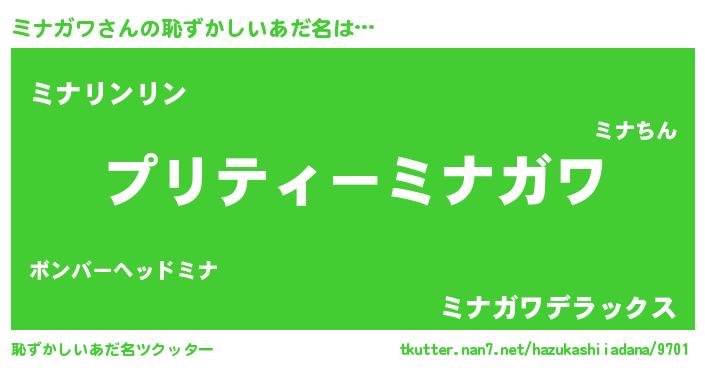 | ヒーロー風カッコイイあだ名 | 『スーパーミナガワ』『炎刃騎士ミナ』 |
