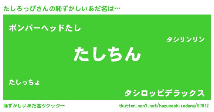 | ヘコむあだ名 | 『たしろっぴ(震え声)』『たし太郎』 |