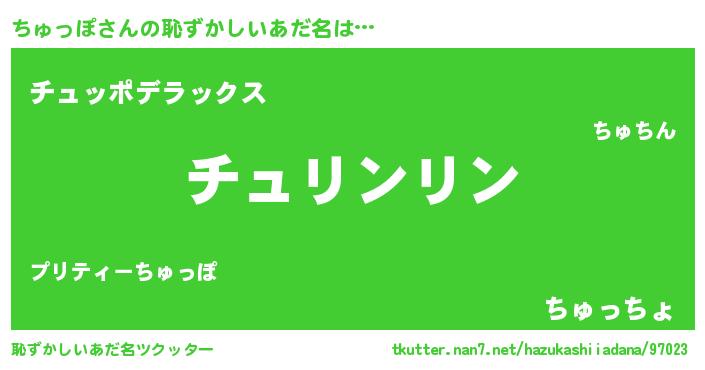 | 男性向けラノベタイトル風あだ名 | 『チュッポスレイヤー』 |
