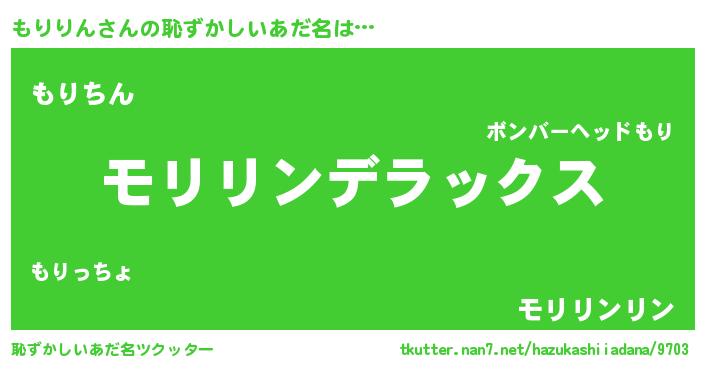 | 男性向けラノベタイトル風あだ名 | 『Re:もりりんから始める異世界生活』 |