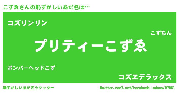 | 意味不明あだ名 | 『住所不定無職こずゑ(11歳)』『自称こずゑ』 |
