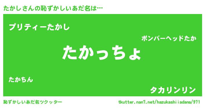 | 意味不明あだ名 | 『たかしフォーエバー』『ペロリンたかし』 |