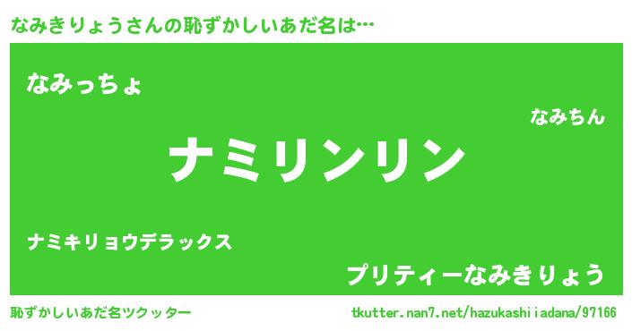 | 意味不明あだ名 | 『とにかく怪しいなみきりょう』 |