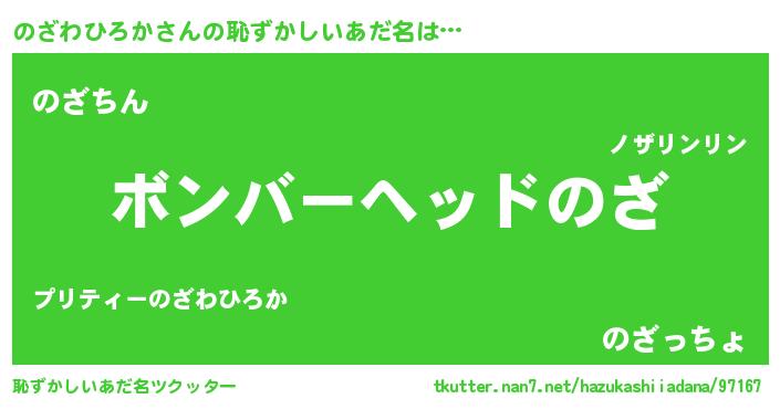 | ヒーロー風カッコイイあだ名 | 『仮面ノザダー』『ネオノザワヒロカ』 |