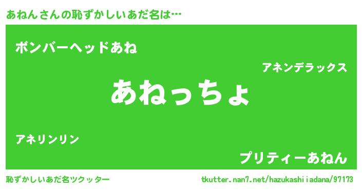| ヒーロー風カッコイイあだ名 | 『ウルトラあねんマン』『スーパーアネン』 |