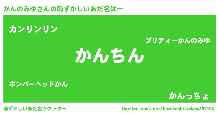 | ヘコむあだ名 | 『かんのみゆ(笑)』『かん太郎』 |