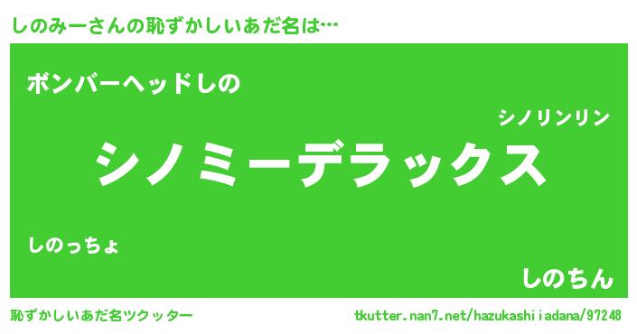 | 意味不明あだ名 | 『自称しのみー』『永久保存しのみー』 |