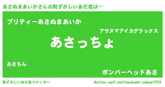 | 伝説のあだ名 | 『秘められし忍者あさぬまあいか』 |