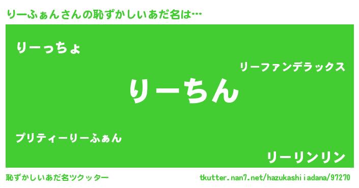 | ヘコむあだ名 | 『りーふぁん(震え声)』『牛乳』 |