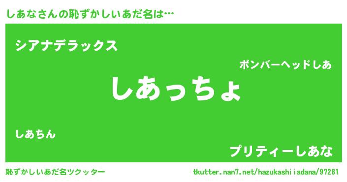 | 意味不明あだ名 | 『しあなフォーエバー』『自称しあな』 |