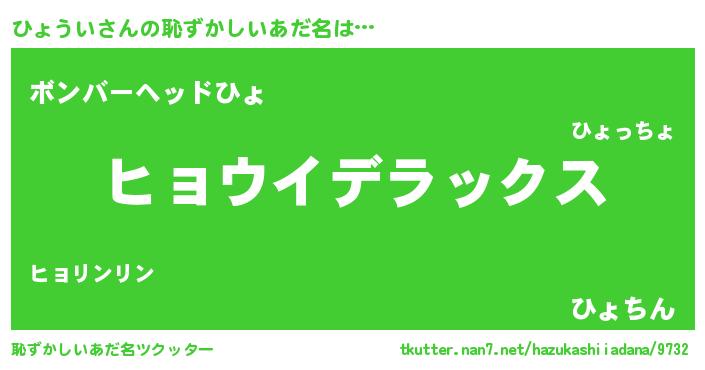 | ヒーロー風カッコイイあだ名 | 『仮面ヒョダー』『サイバー戦士ヒョウイ』 |