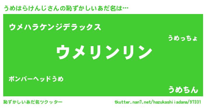 | ヘコむあだ名 | 『うめっ子』『うめはらけんじ(遠い目)』 |