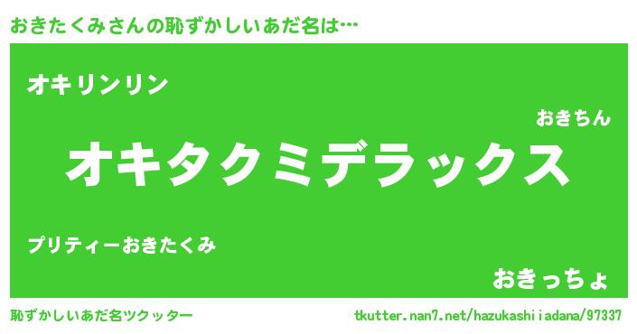 | 意味不明あだ名 | 『自称おきたくみ』『永久保存おきたくみ』 |
