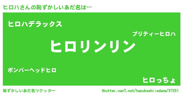 | ヒーロー風カッコイイあだ名 | 『幻影騎士ヒロ』『ウルトラ戦士ヒロハ』 |