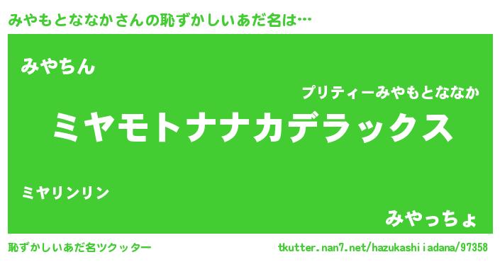 | ヘコむあだ名 | 『みやもとななか(苦笑)』『なまこ酢』 |