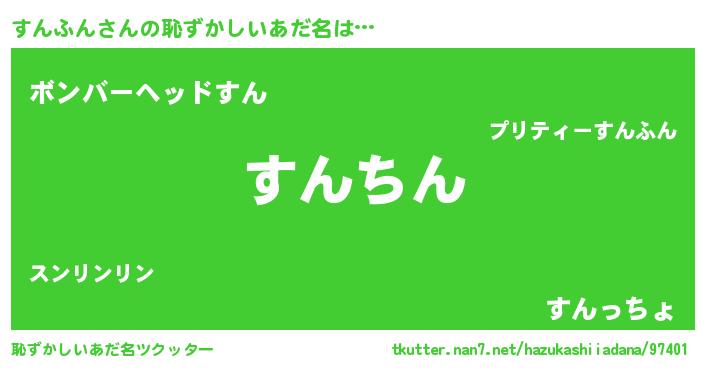 | 男性向けラノベタイトル風あだ名 | 『すんふんという概念が存在しない退屈な世界 』 |