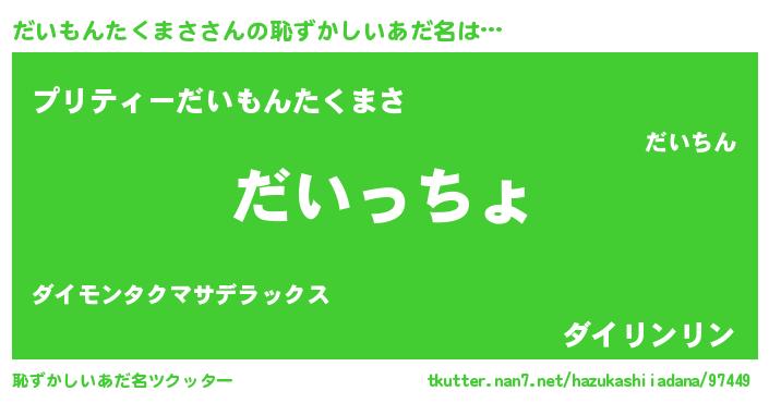 | 意味不明あだ名 | 『だいもんたくまさフォーエバー』 |
