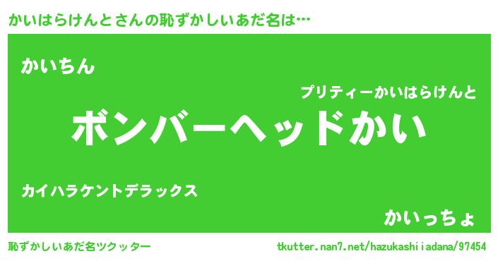| 意味不明あだ名 | 『住所不定無職かいはらけんと(86歳)』 |