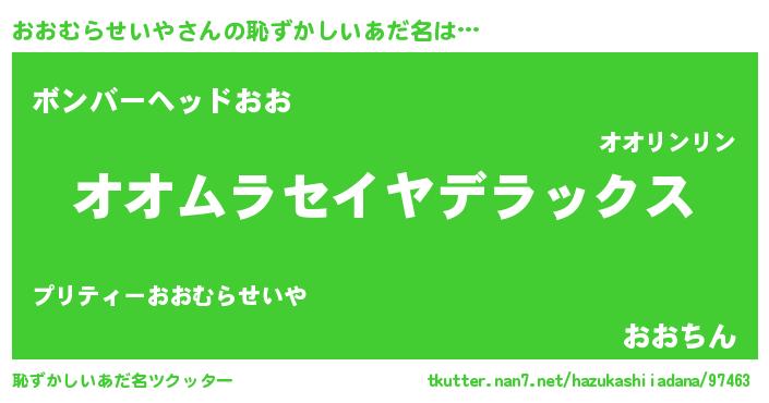 | 男性向けラノベタイトル風あだ名 | 『おおむらせいやに滅ぼされるだけの簡単なお仕事です』 |