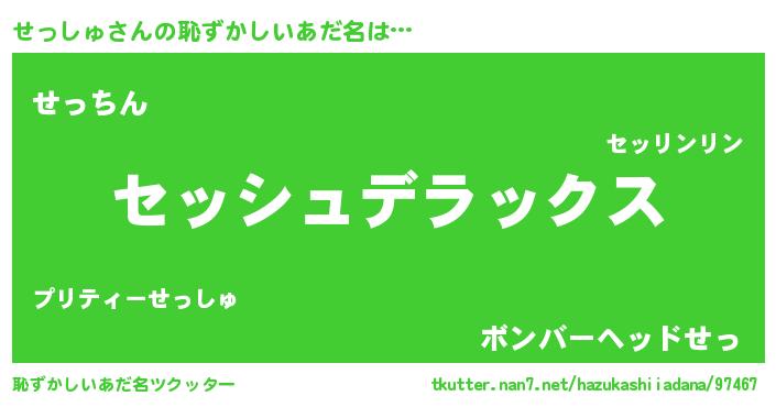 | 男性向けラノベタイトル風あだ名 | 『Re:せっしゅから始める異世界生活』 |