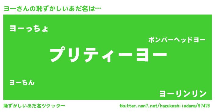 | ヘコむあだ名 | 『ヨーにゅー』『つくし』『ヨーを』 |