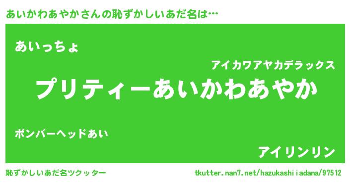 | 伝説のあだ名 | 『伝説のスナイパーあいかわあやか』 |