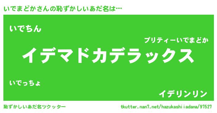 | 意味不明あだ名 | 『自称いでまどか』『永久保存いでまどか』 |
