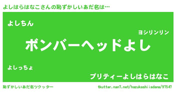 | ヘコむあだ名 | 『よしはらはなこ(笑)』『よしもー』 |