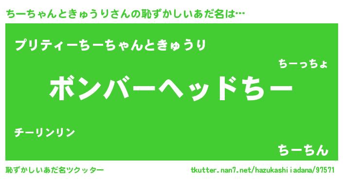 | 意味不明あだ名 | 『住所不定無職ちーちゃんときゅうり(8歳)』 |