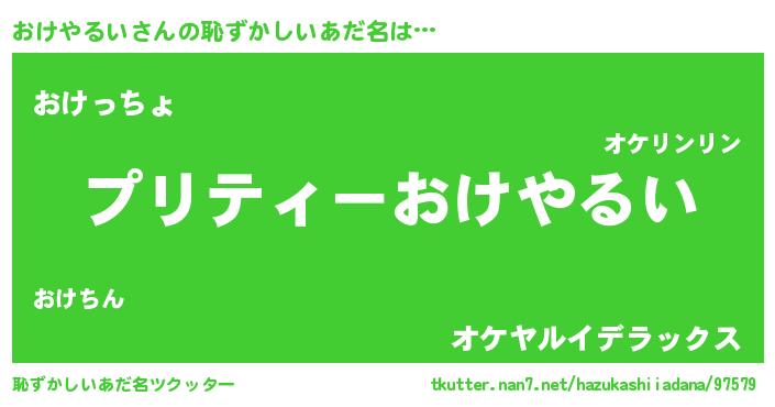| 欧米人風あだ名 | 『アンジェラ・おけやるい』 |