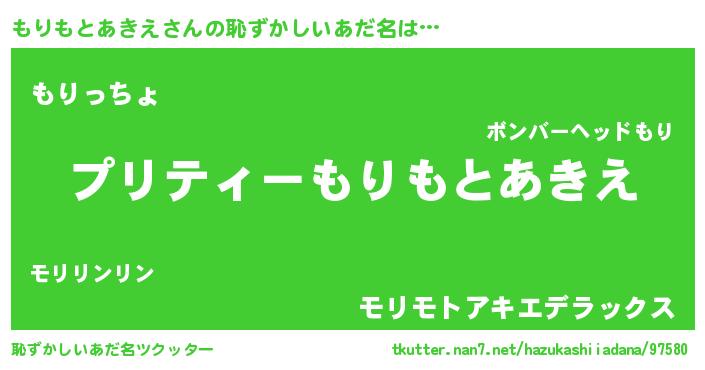 | 肩書あだ名 | 『もりもとあきえ御曹司』 |