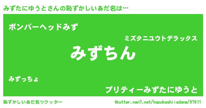 | ヘコむあだ名 | 『みずたにゆうと(笑)』『みずふぇ~』 |