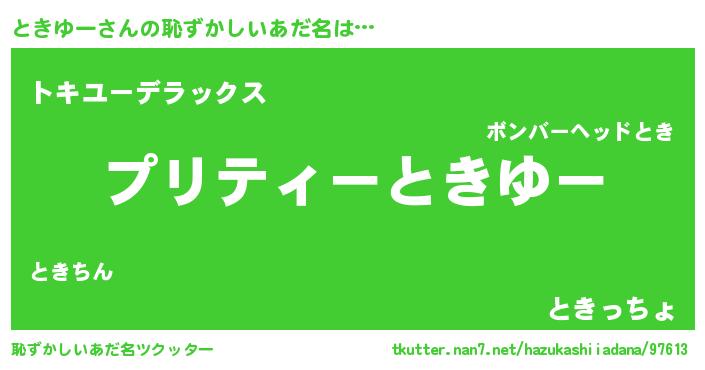 | 男性向けラノベタイトル風あだ名 | 『ときゆーの憂鬱』 |