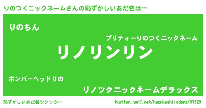| 男性向けラノベタイトル風あだ名 | 『りのつくニックネーム~年齢イコール彼女いない歴の魔法使い~』 |