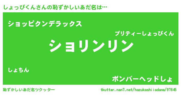 | 男性向けラノベタイトル風あだ名 | 『ダンジョンにしょっぴくんを求めるのは間違っているだろうか』 |