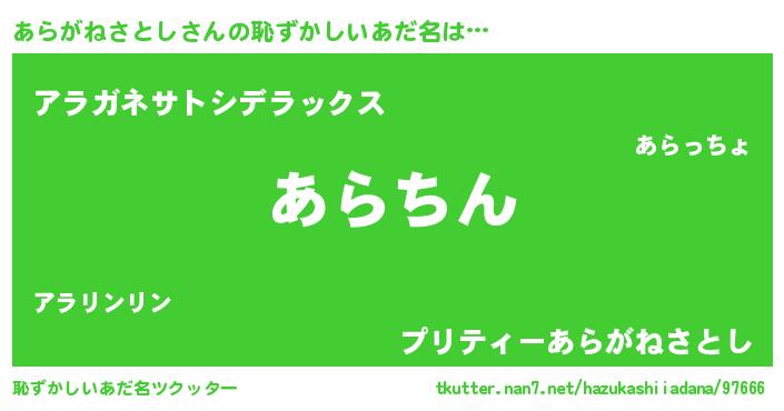 | ヘコむあだ名 | 『あらがねさとし(遠い目)』『あらにゅー』 |